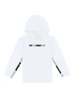Uma camiseta de manga longa infantil masculina, feita de malha drift, com uma estampa no peito que adiciona um toque de estilo. Apresenta recortes nas mangas e laterais com estampa para um visual moderno e dinâmico. Uma etiqueta decorativa nas costas complementa o design da peça. Composição:100% algodão. Ref:19015