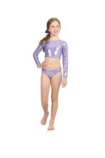Este biquíni cropped com manga longa em lavanda e prata é a escolha perfeita para quem busca um visual inovador e elegante para os dias de sol. Ideal para proteção adicional contra o sol, ele combina estilo moderno com funcionalidade. Composição: 85% poliamida e 15% elastano. Ref.:39221