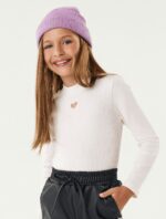 Blusa feminina de manga longa em tecido canelado com um brilho sutil. Possui detalhes de bordado na gola, além de um abotoamento em formato de coração. Composição: 95% ALGODÃO 5% ELASTANO. Ref: 14846