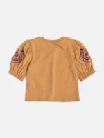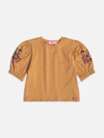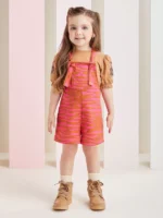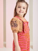 Esta blusa em tom terroso é uma peça encantadora que certamente vai conquistar as meninas. Destacando-se pelas estampas divertidas de tigres em tons de rosa em cada ombro, adiciona um toque de diversão ao visual. Suas mangas franzidas criam um efeito bufante, acrescentando ainda mais charme à peça. Feita com uma composição de 96% algodão e 4% elastano, oferece conforto e flexibilidade para as atividades do dia a dia. Esta blusa é uma escolha perfeita para trazer encanto e estilo ao guarda-roupa das pequenas. Ref.: J5466.