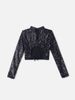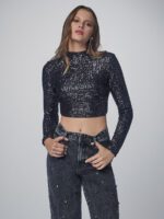 A blusa de paetê preta é uma peça de vestuário sofisticada e deslumbrante, perfeita para ocasiões especiais. Feita com um tecido adornado por lantejoulas brilhantes, ela captura a luz de maneira elegante, criando um efeito cintilante que destaca a beleza e o estilo de quem a veste. Seja em um corte clássico ou moderno, essa blusa adiciona um toque de glamour e requinte a qualquer look noturno, tornando-se a escolha ideal para quem deseja brilhar com sofisticação. Composição: 100% algodão. Ref: T9565
