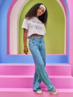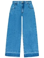 Calça wide leg em jeans baby blue, sofisticada e moderna. Com botão e passantes no cós para um ajuste prático, bolsos frontais e traseiros para funcionalidade, e braguilha com zíper para conveniência. A barra com lavanderia diferenciada oferece um toque de estilo único. Composição: 100% algodão. Ref: 15367
