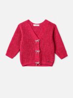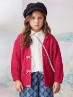 O Cardigan Rosa feito com tricot de alta qualidade. Os delicados laços na parte frontal, adornados com strass, conferem um toque encantador e sofisticado. Versátil e elegante, este cardigan é perfeito para compor looks confortáveis, sendo uma escolha ideal para diversas ocasiões. Composição: 100% acrílico. Ref.: N3795