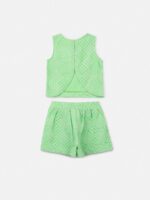 O Conjunto Verde de Laise Bordado é a combinação perfeita de estilo e delicadeza. Com bordados detalhados que realçam a beleza da laise e um laço com aviamento bordado, este conjunto é ideal para meninas que buscam um look sofisticado e encantador. Perfeito para ocasiões especiais, ele une elegância e charme, garantindo que as pequenas se destaquem com muita graciosidade. Composição:100% algodão. Ref: N4074