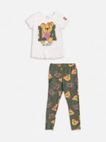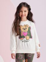 Este conjunto encantador apresenta uma blusa off white com uma estampa de urso no centro, combinada com uma calça verde musgo também estampada com ursos. O casaco, confeccionado em cotton, possui ribana na gola, barra e punhos para um ajuste confortável. Uma combinação moderna e divertida, perfeita para os pequenos fashionistas. Composição: 96% algodão e 4% elastano. Ref.: H5321