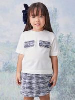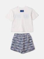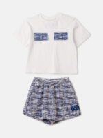 Um conjunto que une sofisticação e versatilidade! Apresentamos nossa blusa branca com pala no bolso em tweed xadrez azul e branco, detalhe de botão travejado, combinada com nosso short saia também em tweed xadrez. Com elástico na cintura para o ajuste perfeito, é a escolha ideal para um look impecável em qualquer ocasião! Composição: 73% poliéster, 26% algodão e 1% elastano.
