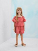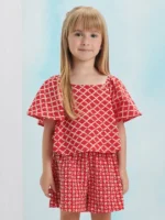 Este conjunto vermelho para meninas é a escolha ideal para um verão cheio de estilo.