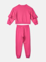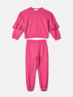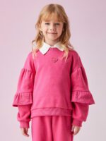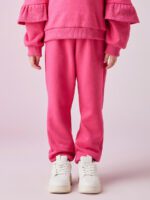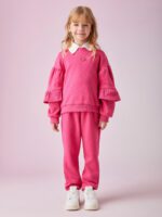 Conjunto Super Comfy: o look perfeito para as pequenas arrasarem! Feito em moletom com felpa na cor rosa, este conjunto apresenta detalhes únicos, como babados nas mangas, patch Animê e calça com modelagem justa. Ideal para dias amenos, essas peças podem ser usadas juntas ou em composições diferentes. Composição: 67% algodão, 33% Poliéster. Ref.: N4365″