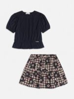 O conjunto Infantil em cotton é uma escolha ideal para o dia a dia, combinando estilo e conforto. A blusa adicionando um toque charmoso ao visual. A saia possui elástico no cós e um short interno que proporciona praticidade nos movimentos, garantindo conforto e liberdade para brincar. Além disso, a saia conta com uma linda estampa floral, que adiciona um toque de delicadeza ao conjunto. Composição de 100% algodão para a blusa e 96% algodão e 4% elastano para a saia, garantindo suavidade e flexibilidade. Ref.: H5386