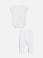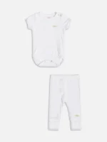 O conjunto de body e legging na cor branca para bebês é uma escolha adorável e prática. O body apresenta mangas curtas e gola redonda, oferecendo conforto e facilidade ao vestir. A legging, por sua vez, é feita de um tecido elástico que proporciona liberdade de movimento para os pequenos. Juntos, formam um conjunto versátil e confortável, perfeito para uso diário. Ideal para manter os bebês confortáveis e estilosos em qualquer ocasião. Composição: 100% algodão.