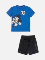 O conjunto de moletom infantil Mickey  é perfeito para os dias ensolarados. Feito em tecido macio, ele combina uma camiseta de manga curta com uma estampa alegre do Mickey e uma bermuda com elástico na cintura, garantindo conforto e ajuste ideal. A escolha ideal para os pequenos fãs do Mickey que querem aproveitar o dia com estilo e praticidade!