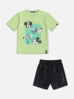 Cheio de energia, o Conjunto Mickey Verde Lima é ideal para os pequenos que não param! A camiseta verde lima, vibrante e divertida, traz uma estampa animada do Mickey, enquanto a bermuda preta complementa o visual com conforto e estilo. Perfeito para acompanhar as brincadeiras do dia a dia com muito charme e liberdade de movimento!