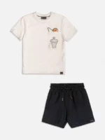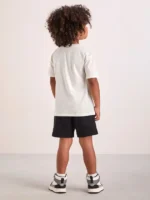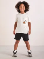 Ao ar livre e para momentos de lazer. A camiseta de manga curta e a bermuda são confeccionadas em tecido leve e respirável, garantindo liberdade de movimento e frescor durante todo o dia. A estampa temática de basquete adiciona um toque divertido e esportivo, fazendo com que seu pequeno se sinta um verdadeiro atleta. Ideal para quem adora se movimentar e brincar, este conjunto combina praticidade e estilo, tornando-o uma escolha excelente para o dia a dia. Composição: 100% algodão. Ref: I1854