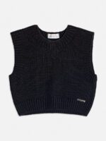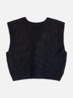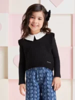 O colete preto é confeccionado em tricot, oferecendo uma opção encantadora para meninas que desejam um visual delicado e cheio de fofura. Sua versatilidade permite combinações com diferentes estilos. Feito com 100% acrílico, proporciona conforto e estilo. Ref.: H5019.