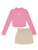 Conjunto versátil com duas opções: Blusa de manga longa estampada Duna, acompanhada por uma saia preta clássica. Essas opções oferecem versatilidade para diferentes ocasiões, seja para um visual descontraído e divertido ou para uma aparência mais sofisticada e elegante. Blusa de manga longa em rosa com estampa Barbie, combinada com uma saia bege elegante. Ref:15263