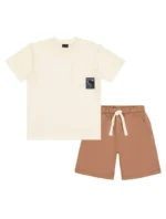 CONJ CAMISETA E BERMUDA NATURAL/AM OCRE