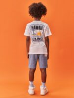 Conjunto com camiseta em meia malha com estampa no peito e nas costas, trazendo personalidade ao visual. A bermuda em eco jeans complementa com elástico e cadarço no cós para um ajuste confortável, além de bolsos frontais para praticidade. Camiseta 100% algodão Bermuda 88% algodão, 12% poliéster. Ref: 19116