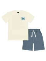 CONJ CAMISETA E BERMUDA NATURAL/AZUL DENIM