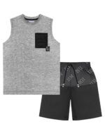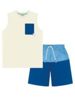 O conjunto de regata e bermuda oferece um visual casual e coordenado. A regata, leve e confortável, é ideal para climas quentes. A bermuda, com um corte prático e geralmente até o joelho, complementa a regata, criando um look descontraído e estiloso. Juntas, as peças proporcionam um visual equilibrado e versátil. Composição:100% algodão. Ref: 17707