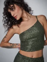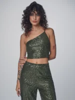 O Incrível Cropped em Paetê Verde Militar é uma peça deslumbrante que combina estilo e sofisticação. Feito de exuberante paetê verde militar, ele reflete a luz de forma única, proporcionando um brilho sutil e elegante. A abertura lateral com zíper invisível adiciona praticidade e sofisticação ao top. É a escolha perfeita para jovens que desejam expressar sua personalidade única, abraçando as últimas tendências com confiança e autenticidade. Composição: 97% Poliéster, 3% Elastano. Ref.: T9266