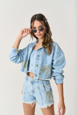 JAQUETA JEANS BORDADA / AZUL JEANS