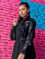 Jaqueta feminina corta-vento em nylon metalizado com abertura em zíper e gola é moderna e funcional. Composição: 100% POLIAMIDA Ref.: 15291