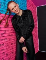 jaqueta boxy de paetê preto com glitter é uma peça verdadeiramente cativante e deslumbrante. Com seu brilho intenso e design moderno, ela não apenas adiciona glamour instantâneo ao seu look, mas também captura a atenção com sua sofisticação e estilo único. É a escolha perfeita para quem quer brilhar em festas, eventos especiais ou até mesmo para dar um toque de luxo e audácia ao dia a dia. Composição: 100% POLIÉSTER. Ref: 15290