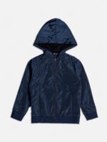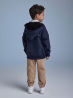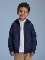 Jaqueta infantil Youccie, azul-marinho, corta-vento, estilo e funcionalidade. Etiqueta decorativa adiciona detalhes extras. Composição: 100% poliéster. Ref.: I1369.