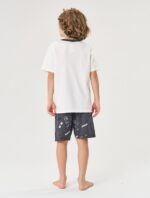 O pijama de camiseta e bermuda azul marinho oferece um visual coordenado e confortável. A camiseta, com seu tecido suave e cor profunda, proporciona um toque relaxante e elegante. A bermuda, também em azul marinho, é leve e solta, garantindo conforto e liberdade de movimento. Juntas, as peças criam um conjunto de pijama que combina simplicidade e estilo, ideal para um descanso agradável. Composição: 100% algodão. Ref: 17727