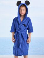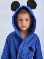 Um roupão azul royal do Mickey Mouse com capuz em formato de orelhas do personagem seria perfeito para crianças! Essa peça combina estilo, diversão e conforto, sendo ideal para pequenos fãs da Disney. O capuz com as famosas orelhas do Mickey adiciona um toque lúdico, tornando o roupão não só funcional, mas também divertido para a hora do banho ou momentos de relaxamento em casa. Composição: 100 algodão. Ref:I1821