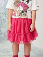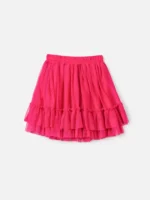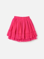 Saia pink feita de tule com forro interno em malha para conforto e delicadeza. Cintura com elástico para ajuste prático e plaquinha de metal para um toque charmoso. Versátil e elegante para diversas ocasiões. Composição: 90% poliéster, 10% elastano. Ref.: N3921.