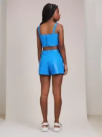 O short azul é uma peça fashion, essencial para garotas que desejam estar na moda.