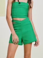 Short verde é confeccionado em tecido leve, proporcionando conforto e liberdade nos movimentos.