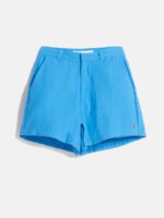 Short saia azul em tecido de alfaiataria, com passante no cós.