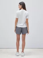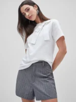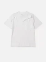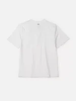 Essa T-shirt de ribana é marcada por suas mangas curtas com acabamento na bainha e um detalhe de laço em tricoline no ombro esquerdo. A cor off white facilita sua combinação com diferentes estilos de roupa. Feita principalmente de algodão, é uma escolha confortável para dias quentes. Um detalhe adicional é a placa de metal costurada no decote das costas, que adiciona um toque de estilo à peça. Composição: 100% algodão. Ref.: T9609