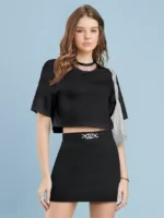 Com franjas de brilho que adicionam um toque glam, possui decote em ribana para um ajuste confortável.