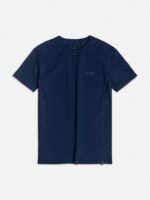 Uma T-shirt de manga curta com recorte na cor azul marinho geralmente se refere a uma camiseta onde há um detalhe específico ou uma parte destacada, como na gola, nas mangas ou até mesmo na parte frontal, feito com tecido de cor azul marinho. Este tipo de detalhe pode proporcionar um contraste elegante e moderno ao visual da peça, sendo versátil para diversas ocasiões. Composição: 100% algodão. Ref: D2253