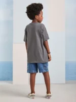 Para pequenos fãs do Mickey! A cor cinza escuro é versátil e fácil de combinar com outras peças, enquanto a estampa vibrante adiciona um toque de personalidade ao visual. Ideal para dias de lazer ou passeios, esta camiseta é uma escolha prática e estilosa para qualquer guarda-roupa infantil. Com seu tecido macio, seu filho vai adorar o conforto e a liberdade de movimento, sem abrir mão da diversão e do estilo. Composição: 100% algodão. Ref: D2486