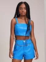 Seu design único inclui costas com zíper, conferindo um toque prático e elegante.