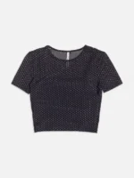 Explore a combinação perfeita de estilo e conforto com este top de tule preto. Projetado com um top de malha por baixo, oferece uma cobertura ideal enquanto mantém um toque de mistério e elegância. O tule transparente adiciona um charme especial, perfeito para combinar com jeans ou saias para um look noturno.