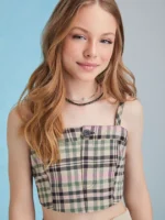 O cropped xadrez em algodão é versátil e estiloso, perfeito para as garotas que buscam um visual diferenciado. Com vista fake na frente, caseado e botão, além de lastex nas costas e alças finas ajustáveis, é uma peça que impressiona. Ideal para criar looks cheios de charme! Composição: 100% algodão. Ref: R4122