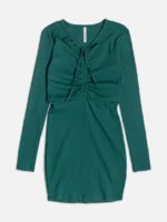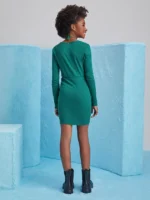 O vestido verde bandeira é uma escolha perfeita para as garotas que buscam conforto e praticidade no dia a dia. Feito em ribana, este vestido oferece mangas longas e uma amarração charmosa na frente através de friso com efeito franzido. O vestido combina estilo e facilidade de uso, ideal para encarar as atividades diárias com muito conforto. Composição: 98% algodão e 2% elastano. Ref.: R4161.