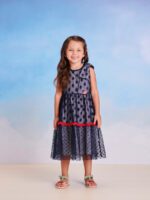 Um vestido charmoso e moderno foi confeccionado em tule de poá com forro que deixa as meninas ainda mais confortáveis.