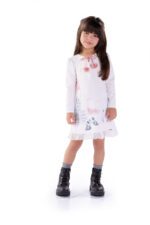 Este vestido branco para as pequenas é um encanto. Feito de tecido macio e confortável, possui mangas longas e uma saia rodada que permite liberdade de movimento. O bordado na frente adiciona um toque delicado, o acabamento impecável garantem um visual adorável. Ideal para deixar sua pequena ainda mais charmosa e radiante em qualquer ocasião. Composição: 100% POLIESTER Ref: 2100113