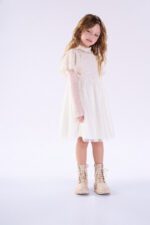 Este vestido encantador para meninas é um verdadeiro sonho! Em um tom suave de creme, ele possui um design delicado com mangas longas e uma saia rodada que traz leveza e movimento. O detalhe das mangas adiciona um toque de elegância, enquanto o tecido leve garante conforto e frescor. Ideal para ocasiões especiais, o vestido é perfeito para fazer qualquer menina se sentir como uma princesa. Composição: 100% poliester. Ref: 3100115
