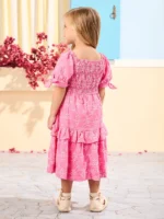 O encantador vestido infantil apresenta estampa xadrez rosa com lastex nas costas para um ajuste confortável, além de faixa na