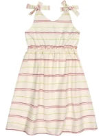 Este vestido listrado é uma explosão de cor e estilo. Confeccionado em tecido leve e fluido, ele combina conforto com um design marcante. Composição: 100% algodão. Ref: 15389