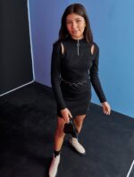 Este vestido possui recortes estratégicos em preto, criando um visual elegante e moderno. Os recortes podem ser localizados na cintura, nos ombros, nas costas ou em outras áreas que realçam a silhueta e adicionam um toque de sofisticação ao vestido. Geralmente feito de tecido confortável e com um caimento fluido, é uma escolha versátil para diversas ocasiões, desde eventos formais até encontros casuais elegantes. Composição: 95% ALGODÃO 5% ELASTANO. Ref: 15306