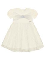 Este encantador vestido branco é a escolha perfeita para ocasiões especiais. Com um design elegante, ele conta com um laço de tule que adiciona um toque de sofisticação e charme. O tecido leve e fluído proporciona conforto durante todo o evento, enquanto o laço de tule confere um detalhe delicado e feminino. Ideal para eventos formais ou celebrações, este vestido vai deixar sua pequena deslumbrante e pronta para brilhar. Composição: Sobreposição: 100% poliéster. Vestido: 94% algodão, 4% poliéster e 2% elastano. Ref:10237