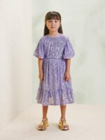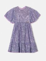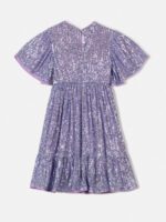 Com paetê lilás por toda a extensão ele traz forro de malha, mangas amplas e elástico na cintura, é confortável e perfeito para ocasiões especiais.